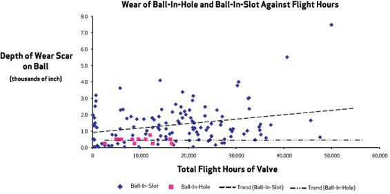 Distribution of Ball Spool Wear of Ball-in-Slot versus Ball-in-Hole Technology.