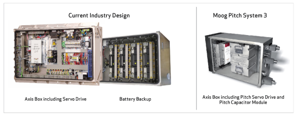 - Fewer components, consolidated electronics and less required maintenance are the hallmarks of Moog’s next-generation pitch control system